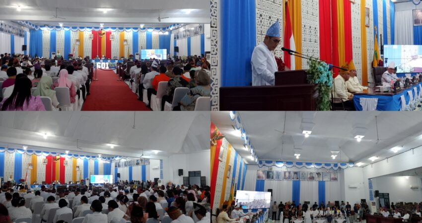 Sementara itu, sambutan Gubernur Sulawesi Utara yang dibacakan oleh Asisten II Sekretariat Daerah Provinsi Sulut, Chrestiano Talumepa, menyampaikan apresiasi atas capaian dan komitmen Pemerintah Kabupaten Kepulauan Sangihe dalam menjaga stabilitas daerah, meningkatkan kualitas pelayanan publik, serta memperkuat peran strategis Sangihe sebagai wilayah perbatasan.