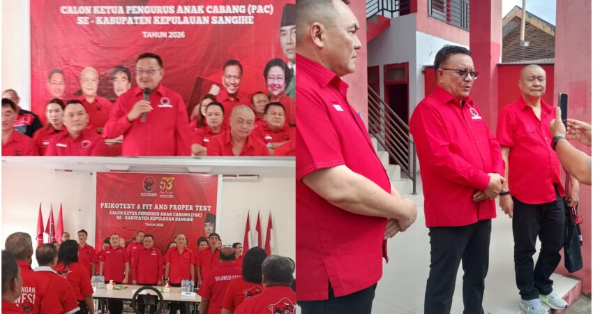 Ekuatornews.com. – Dewan Pimpinan Cabang (DPC) PDI Perjuangan Kabupaten Kepulauan Sangihe menggelar seleksi ketat bagi para calon Ketua Pengurus Anak Cabang (PAC) se-Kabupaten Sangihe. Seleksi yang dipusatkan di Kantor Sekretariat DPC PDI Perjuangan Sangihe ini meliputi psikotes dan fit and proper test, Kamis (5/3/2026).