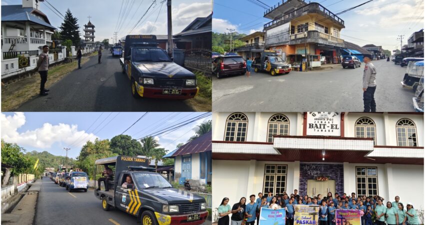 Untuk memastikan kegiatan berjalan aman dan lancar, pengamanan dilakukan oleh personel Polsek Tamako yang turut mengawal jalannya pawai hingga selesai.