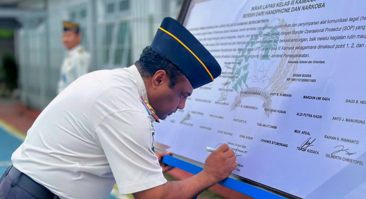“Zero HALINAR adalah komitmen bersama. Tidak hanya petugas, tetapi juga seluruh WBP harus berperan aktif dalam menjaga keamanan dan ketertiban di dalam Lapas,” tegas Kepala Lapas Kelas III Kaimana, Yoseph S. Rumbiak dalam keterangan tertulis kepada awak media, Senin (20/4/2026).