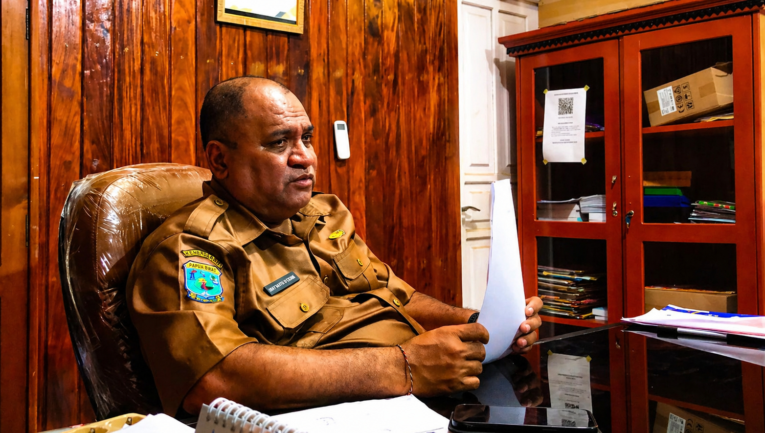 “Kepala Dinas Pendidikan, Pemuda dan Olahraga (Dikpora) Kabupaten Kaimana, Ray Ratu D. Come, saat ditemui awak media di ruang kerjanya”