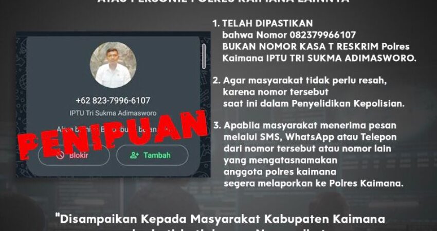 Waspada Modus Penipuan, Kasat Reskrim: Jangan Mudah Percaya dan Segera LaporkanPapua Barat|8 Oktober 2025oleh Rei Rumlus baca selengkapnya